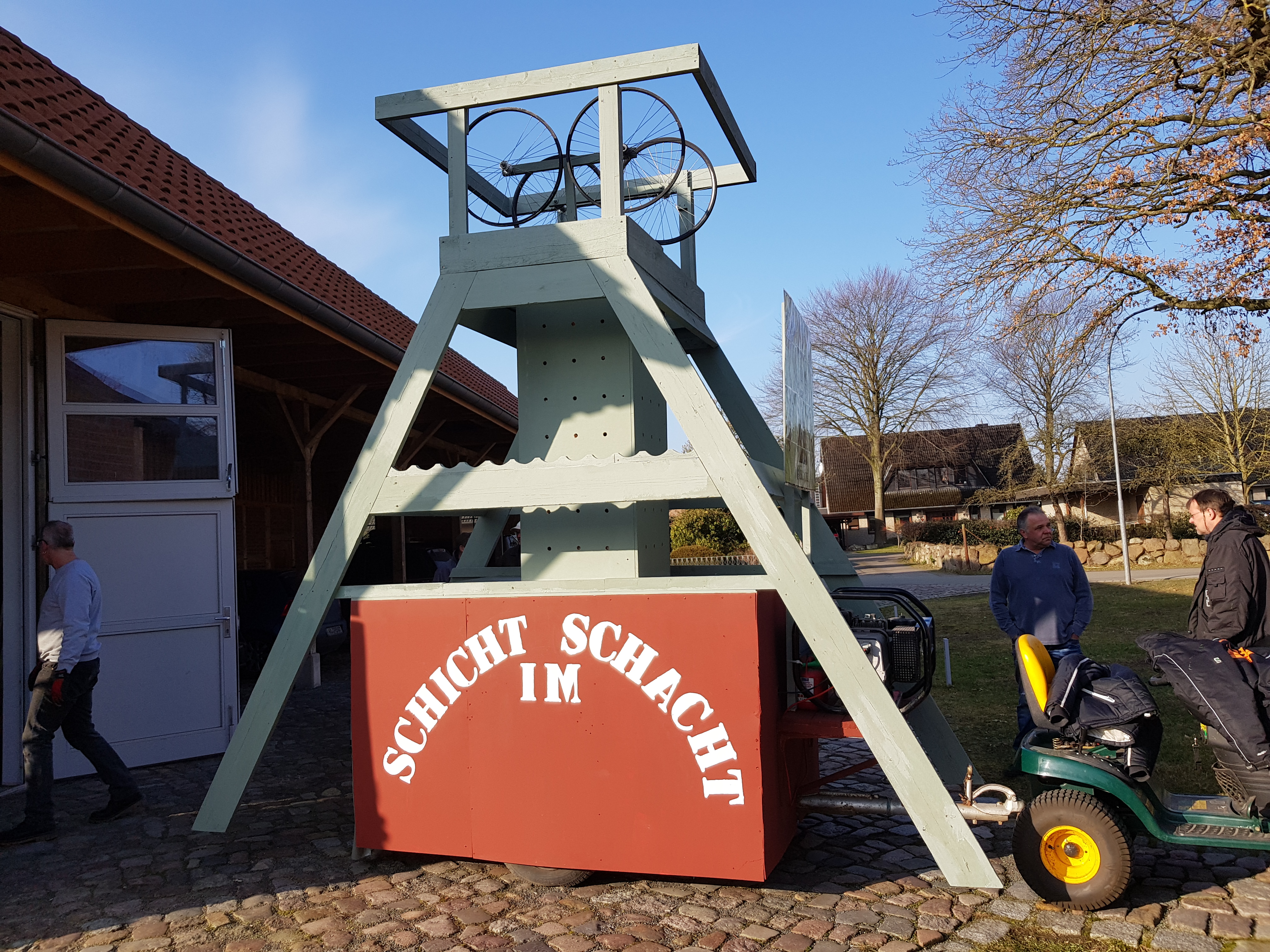 Doppeldeutiges Thema: Auch für unsere Wagenbautruppe ist Schicht im Schacht, d. h. wir hören erstmal auf, uns mit Themen am Toppenstedter Umzug zu beteiligen.